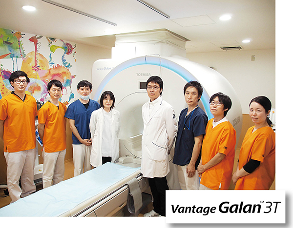 同院に2017年3月、4台目の3T MRIとしてVantage Galan 3T(以下、Galan 3T)が導入された。それまで3T MRI(すべて他社製)3台で1日50件前後の検査を行っていたが、精査目的が多く検査時間が長いことや当日検査にも対応することからフル稼働している状況だった。増加するMRI検査のニーズに柔軟に対応するための増設で、現在は1日55〜60件の検査件数となっている。同院のCT/MR部門は、中央に各装置の操作卓と読影端末を集約し、両側にMRIとCTが3台ずつレイアウトされ、診療放射線技師だけでなく放射線科医も常駐する。上谷特任助教は、「常に放射線科医がいることで撮像方法について相談したり、急変にも迅速に対応できるなど臨機応変な診療ができる体制になっています」と説明する。