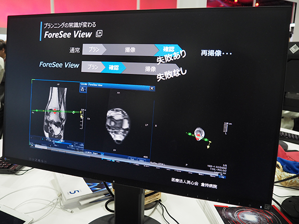 MRの最新アプリケーションや機能としては,Ultra Gradientシステムによる歪みの少ない“High Quality DWI”,高速な3D撮像を可能にする“Fast 3D”,非造影で1回のスキャンで動態撮像が可能な“mASTAR”,ステントの内腔評価を可能にする“UTE with Time-SLIP”,動態撮像と金属に強い“mUTE 4D-MRA”などを紹介した。“ForeSee View”は,ROI操作に沿ってリアルタイムに撮像結果がわかるため,断面設定の失敗が少なくなり検査時間の延長を防ぐことができる。