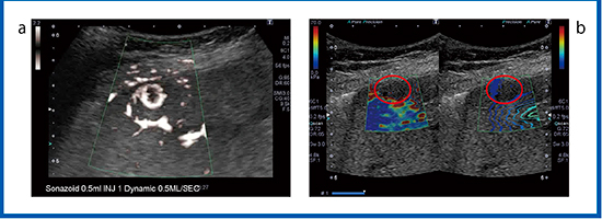a:Bモード b:造影SMI