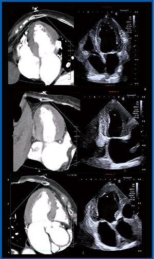 上段:四腔像,中段:二腔像,下段:三腔像
