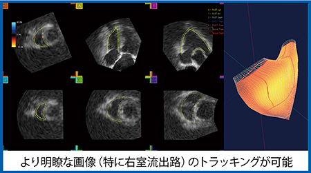 Aplio iシリーズの進化した3D Speckle Trackingでは,右室専用のトラッキング解析ソフトウエア3D-RV WMTが登場した。これにより,今まで不可能であった右室全般および局所機能のより正確で詳細な評価が可能となり,今後,肺高血圧症や心不全症例において新たな心機能評価が可能になると考えられる。