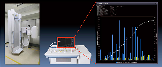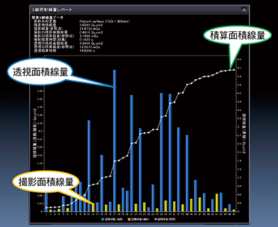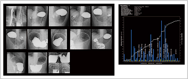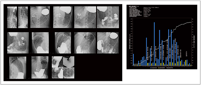 Raffine-iは、低被ばくで放射線防護の最適化を図れる。また、Dose-ManagerのX線照射レポートは、被ばく線量の記録が可能である。さらに、X線照射レポートでは、検査開始から終了までの透視・撮影の線量情報をグラフ表示でき、「消化管検査の見える化」を実現する。これにより、診療放射線技師ごとの撮影状況を明らかにでき、撮影技術の向上の一助となった。