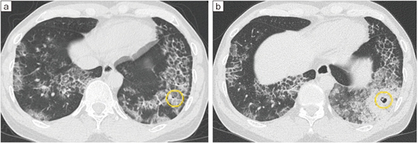 図15の症例のCT画像。当院でのクライオ生検の結果、肺胞蛋白症と診断された。
