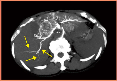 図3 4D-CTによる大腸がん肝転移症例の動注リザ―バー療法での