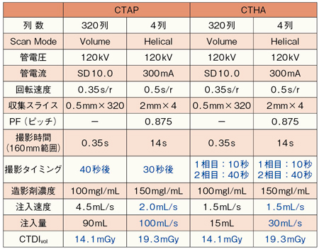 図6 4列IVR-CTと320列IVR-ADCTにおける撮影条件比較