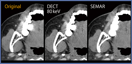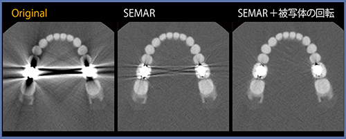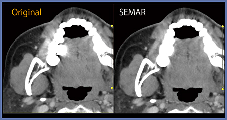 図5 SEMARを用いたメタルアーチファクト低減(適用前後の比較)