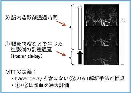これらが要因となりMTTやCBVにバイアスがかかると,CBV/MTTで求められるCBFも変化するため,解析手法によってCBF画像がまったく異なってしまう。その結果,脳血液関門を通過する拡散トレーサーを用いる酸素代謝PETのCBF画像と乖離することが問題であった。