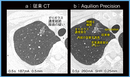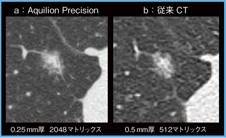 Aquilion Precisionは,肺小結節の質的推定に威力を発揮しており,当院ではフォローアップしていた症例が方針決定に至る例が増加している。