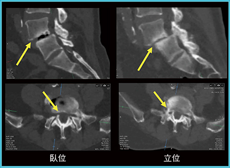 図3は脊椎すべり症で,臥位では無症状であるが,立位では痛みを生じる症例である。整形外科医からは,立位CT画像を術前に確認することで,自信を持って治療部位の同定が可能であると高い評価が得られた。