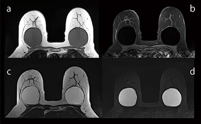 シリコンインプラント検査用の撮像シーケンス“PASTA-Si”を搭載。シリコン成分を高信号に描出することができるため,インプラントの内容成分がシリコンであるのか生理食塩水であるのかの識別,さらにはシリコンの漏れの有無を正確に確認することができます(図1)。