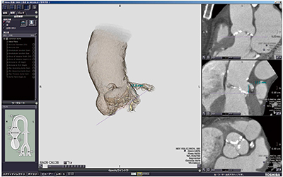 TAVRは,2013年10月の保険償還以降,全国で40を超える施設で実施されている。TAVRを施行するに当たり,CTによる術前支援画像の提供は必須であり,非侵襲的に有用性の高い画像を提供することが重要である。TAVR施行の術前CTは,腎機能の影響を考え,できるかぎり少ない造影剤量で撮影することが望ましい。東芝では,低造影剤量で撮影可能な“バリアブルピッチヘリカルスキャンシステム”を有している。また,解析をできるだけ簡便かつ再現性良く行えるように,TAVR計測アプリケーションをそろえている。