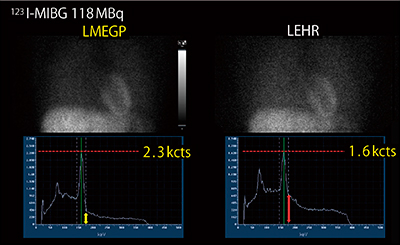 低中エネルギー汎用(以下,LMEGP)コリメータは,感度と空間分解能,ペネトレーションという相反するパラメータを徹底的に検討し,欧米と異なる日本のニーズに対応した心筋SPECT検査に最適なコリメータである。低エネルギー高分解能(以下,LEHR)コリメータと比較して約1.8倍の感度があり,効率良くガンマ線の計測が行えるため,低投与量でも十分なカウントを得ることができる。また,123Iのような高エネルギーのフォトピークを有する核種を用いた検査においては,高エネルギー側からの散乱線の混入を抑えることで,画像コントラストおよび定量性が改善される(図4)。このように,核種によらず汎用的に使用することが可能である。