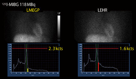 低エネルギー高分解能(LEHR)コリメータと比較して約1.8倍の感度があり,効率良くγ線計測が可能なため,心電図同期収集や99mTc製剤に比べてカウントが得られにくい201Tl製剤でも安定して画像を提供することができる。