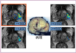 rSIと病理による癌面積比の相関性の検討では,3,3.5,4SDにて高い相関が見られた。また,フュージョンrSIでは,3.5,4,5SDでは一部の症例で描出できなかったが,3SDではすべての症例で描出でき,病理の数値とも類似していたことから,最も有効であると考えられる。