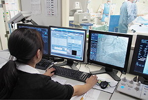 血管撮影室では診療放射線技師がCardioAgentのレポートに入力