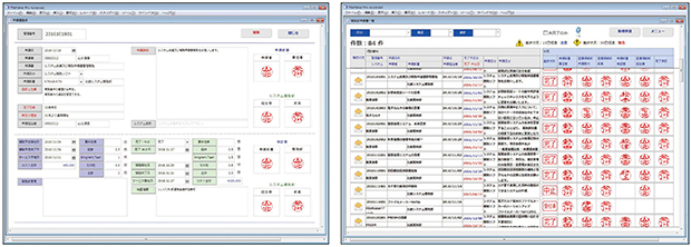 図1 開発申請書画面(左)と一覧管理(右)。院内からの開発依頼を一覧し進捗状況を管理できる。PNS画面にリンクボタンを登録することで利用頻度が向上した。