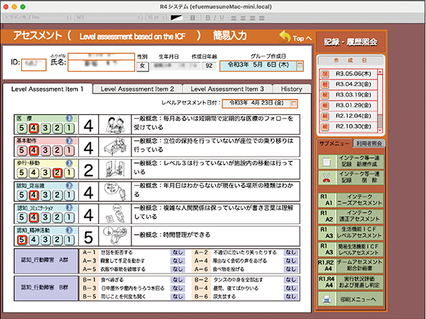 同施設では,LIFEへの対応を視野に基幹システムをベンダー製の介護情報システムへのリプレイスを進めた。その理由について新保氏は,「LIFEの運用では,介護保険の改定に合わせた迅速なシステムの改修が必要になること,自分自身がそろそろ引退の時期を迎えてFileMakerの内製によるシステム構築の体制を見直す必要があると考えたことが大きな要因です。基幹業務系のシステムはベンダー製として,FileMakerはそのほかの業務支援へと棲み分ける判断をしました」と説明する。しかし,基幹システムのLIFEへの対応が思うように進まない事態が発生し,新保氏は並行してFileMakerでのLIFEの入力システムの開発を開始。その結果,ベンダーのシステムがLIFEの実運用まで半年以上かかったところ,FileMakerのカスタムAppは2か月程度で完成したという。この開発の過程で,九州工業大学大学院生命体工学研究科の井上創造教授がCEOを務める合同会社AUTOCAREが開催した「LIFE入力選手権!」に応募したところ,新保氏の作成したFileMakerのLIFE入力システムが入賞を果たした。新保氏は,「厚生労働省が作成しているLIFEの様式に合わせてインターフェイスをつくりました。見慣れたフォーマットで速くストレスなく入力できるものになったと自負しています。残念ながら実際の稼働はかないませんでしたが,FileMakerでここまでできるということを示せてよかったと思います」と言う。