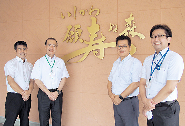 うるま市は沖縄本島の中部に位置する“みほそ(真ん中,おへそ)”の町で,人口約12万人。いしかわ願寿ぬ森は1996年開設で,介護老人保健施設(老健,定員:80名)のほか,通所リハビリテーション(定員:50名),ホームヘルパーステーション,居宅介護支援事業所などを運営する。総職員数は103名(役員6名,委託業者13名を含む)。老健は,在宅復帰率50%以上,ベッド回転率10%以上などの指標をクリアした超強化型の施設として,利用者の早期の在宅復帰を支援している。また,通所リハビリテーションは,リハビリや入浴,レクリエーションなど提供し,市内のほか恩納村,読谷村,金武町などから利用者を受け入れている。新保氏は,「在宅復帰を基本として,利用者のご家族をはじめさまざまな施設と連携してサービスを提供しています」と述べる。