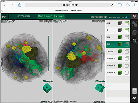 図4 モバイルVINCENT画面(開頭シミュレータ/テンソル解析)