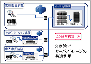 当院では,2005年度にGE社製「Centricity PACS」を導入した。翌年には電子カルテ稼働に合わせて,LANとPACSサーバの冗長化とモニタ環境の整備を図った。この背景には,2008年度の診療報酬改定において,電子画像管理加算が設けられたことがある。その後,PACSサーバのデータ量の増大などにより,2011年度にはPACSを更新し,バージョンが「LX V2.0」から「EE V3.0」になった。さらに,2015年度の電子カルテ更新時には,PACSと内視鏡,生理検査,循環器,病理,文書管理の各部門システムを統合。広島市立舟入市民病院とのシステム統合を図るために,「EE V4.0」へとバージョンアップした。そして,2016年度にはPACSの2回目の更新を行い,GE社製の「Centricity Universal Viewer」と「Centricity Clinical Archive(CCA)」を導入した。