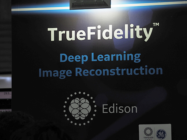 CTの展示エリアで最も注目を浴びていたのが,Edison Platformで開発されたCT画像再構成技アルゴリズム“TrueFidelity”である。今回のITEMに合わせて発表した,GEヘルスケア・ジャパンが最も力を入れてPRした展示の一つだ。