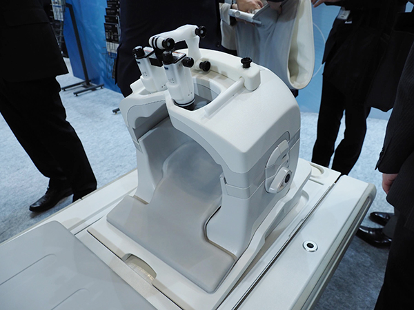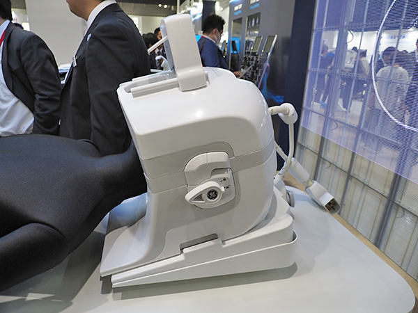 今回,MRIコーナーでは新製品が多く,今年1月に日本で初めて販売されたMRガイド下集束超音波治療器「ExAblate 2000」も注目を集めた。子宮筋腫治療目的で薬事承認を取得しており,ExAblate 2000によってMRIで患部の位置や温度変化を常時確認しながら治療できるため,子宮筋腫を切らずに日帰りで治療可能になると期待されている。
