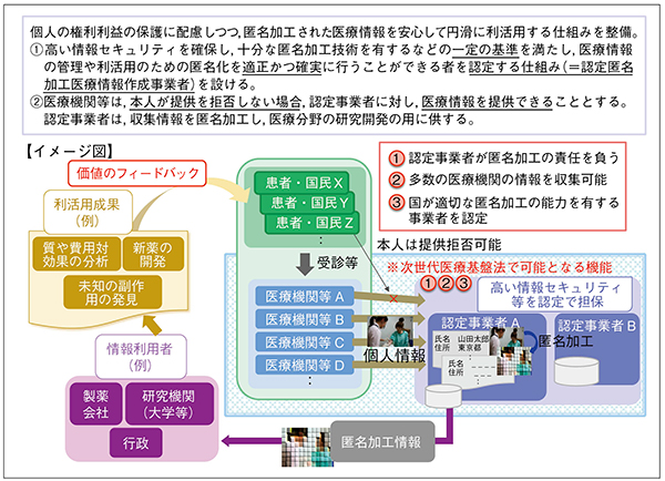 図1 次世代医療基盤法の全体像(匿名加工医療情報の円滑かつ公正な利活用の仕組みの整備)