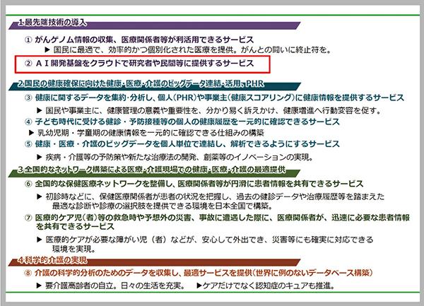 さらに,わが国のAI研究開発,社会実装を加速するために,2018(平成30)年9月には,「イノベーション政策強化推進の有識者会議『AI戦略』(AI戦略実行会議)」が設置された。この有識者会議の提言を受けて,「統合イノベーション戦略推進会議」では,2019(令和元)年6月に,「AI戦略 2019」を策定した。厚生労働省はこの中で,健康・医療・介護におけるAIの社会実装に取り組む。