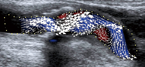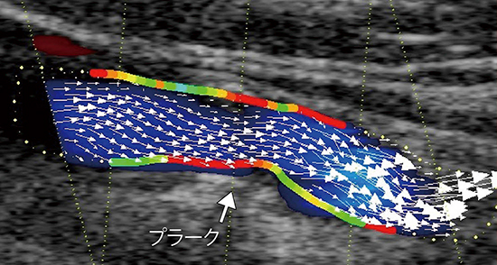 図3 内頸動脈起始部のプラークと血管屈曲による複雑な血流ベクトル