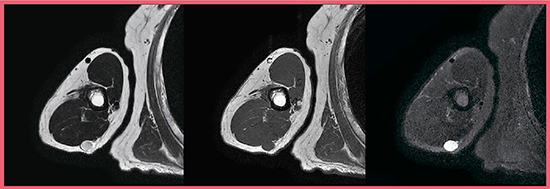 図3 症例1:Regional RF Shimmingを適用した神経鞘腫の画像