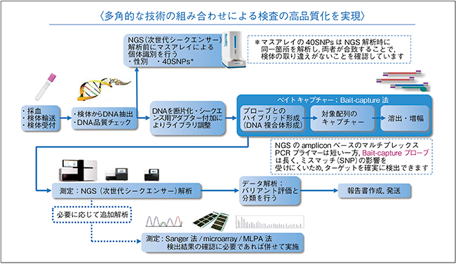コニカミノルタは,2017年に米国大手の遺伝子検査企業であるAmbry Genetics corporation(以下,Ambry)をグループに迎え,本邦においても2019年より遺伝子検査サービスの提供を開始したところである。Ambryは1999年米国にて創業し,最先端の遺伝子診断解析技術を持ち,世界で初めて診断を目的としたエクソーム解析試験をはじめ,数多くの“1st in class”の検査を提供してきた(図1)。また,豊富な実績や多様な検査項目,高い検査処理能力,遺伝カウンセラーチャネルでの強さを背景に,成長著しいがん領域を中心とした米国の遺伝子検査市場におけるリーダー的存在である。さらなる品質向上のために設計された新たなラボプロセスの実装(図2)や,数多くの研究および共同研究への継続的な参加により,可能なかぎり正確で有益な臨床的評価が行えるよう日々向上を図っている。また,未知の重要な病的バリアント(病的変化)が検出可能で,病的意義不明なバリアント(VUS)を減少させる,より正確な解析結果をもたらすRNAの同時検査サービス(+RNAinsight)も,米国にて2019年より開始した。