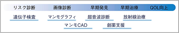 コニカミノルタは,これまでの画像診断に新たに遺伝子検査を加え,網羅的な乳がん診療へのサポートに向けて取り組んでおり(図4),一人でも多くの方々のQOL向上とがんゲノム医療の普及と進歩への貢献をめざす。
