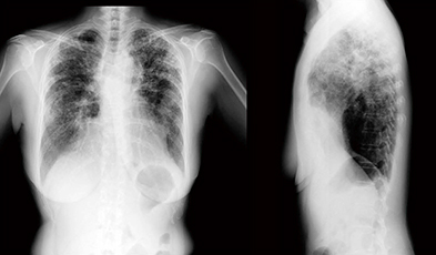 当院では,IP中心で胸部X線動態撮影を実施しており,これまでに30〜40症例のデータが得られている。全例において正面像と側面像を撮影しており,それらから得られる推定肺野容積と呼吸機能検査の結果を比較したところ,良い相関が得られている。現状では,経過観察症例は安定した1例のみであり,過去と現在の画像比較においては同様の結果が得られているが,悪化した症例の経過観察や,予後との相関,検出精度については今後の検討課題である。