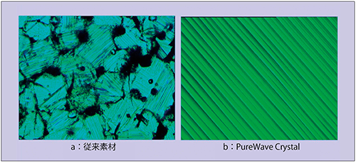 超音波診断装置の開発では,微弱な信号を効率良く受信することができる素子が常に求められてきた。それを現実にしたものが,“PureWave Crystal(単結晶)”と呼ばれる超音波素子で,結晶方向を一定にすることにより,微弱な反射信号でも効率良く電位を取り出せるように設計されたものである(図1)。