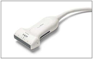 「eL18-4 PureWaveリニアトランスジューサ」と乳腺エコーをサポートする「AI Breast」
