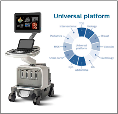 2019年2月,フィリップスはユニバーサル・プレミアム超音波診断装置「EPIQ Elite」をリリースした(図1)。EPIQ Eliteは,腹部,心臓,表在,血管など,さまざまな臨床領域に対応したプレミアムクラスの超音波診断装置である。あらゆる領域で最高の画質を提供するため,24インチのHD MAXディスプレイを採用。アメリカ放射線医学会(ACR)の推奨するモニタ輝度(350cd/m2以上)を満たし,10bitの色深度で広色域の表現が可能である。