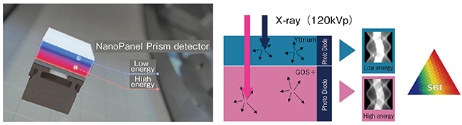 IQonは,検出器側でX線を2つの光子エネルギー帯で分離するDual-Layer detector方式を用いている。IQonの検出器「NanoPanel Prism」は2層構造で,上層では低エネルギー成分,下層では高エネルギー成分のX線が吸収されるシステムである(図1)。この方式の大きな利点としては,2つのrawデータをミスレジストレーションなく得られるために,動きの影響の少ない,造影効果の一致したデータ収集が行える。被ばくにおいては,自動露出機構による電流変調が可能なため,線量の最適化が可能である。