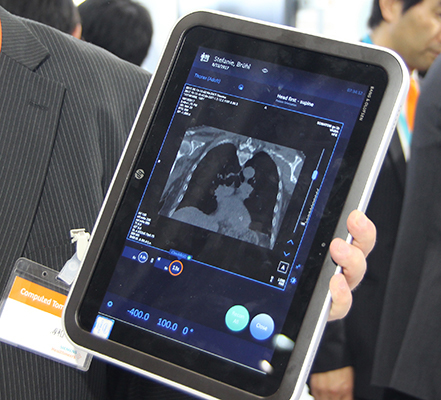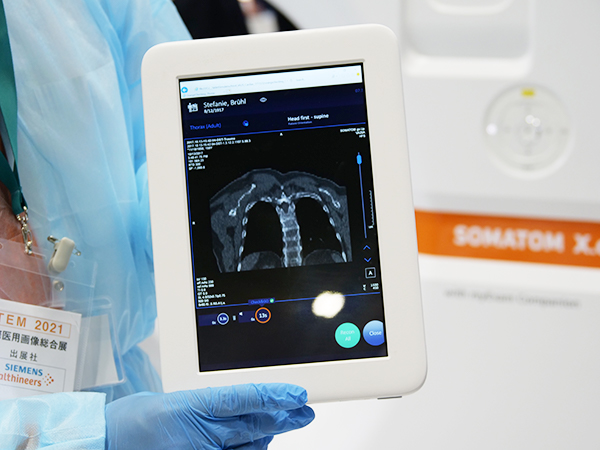 タブレットで操作するモバイルワークフローCT「SOMATOM go.Top」