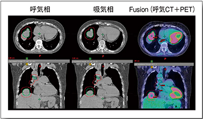 図4 症例1:4D-CTから得られる呼気相・吸気相の画像およびPETとのフュージョン画像