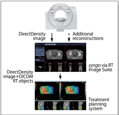 図5 DirectDensityを用いた線量分布計算までの流れ (画像提供:シーメンスヘルスケア株式会社)