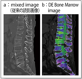 臨床上の変化としては,検査フローの変化が挙げられる。例えば,新旧椎体圧迫骨折の診断において,形態画像のみでは評価困難な椎体圧迫骨折ではMRI検査が施行されるが,SOMATOM DriveによるDECTのDE Bone Marrow imageを導入してからは,DECTが第一選択となり,評価できない場合にのみMRI検査を施行する流れとなった。
