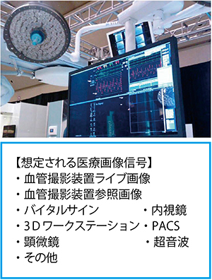 Hybrid ORを設置する場合の留意点は, (1)HEPAフィルタ(図1),(2)モニタ(図2),(3)手術用照明灯などの医療機器の位置を血管撮影装置との位置関係を考慮しながらレイアウトすることである。特に,(1)のHEPAフィルタの位置は天吊り式の血管撮影装置であっても,床置き式の血管撮影装置であっても患者直上の設置を心掛け,清潔度を保つためにラミナー・エアフローを確保することが重要である。また,(2)の手術時のモニタの位置も,執刀医への表示だけでなく麻酔科医・メディカルスタッフへも表示を行うことは,手術室内で情報を共有する観点から必要かつ重要である。