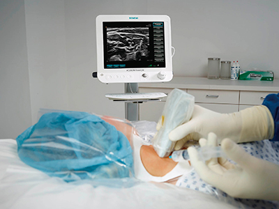 ACUSON P500(図2)は,point of careでのさまざまな使用目的に対応できるよう,据え置き型超音波装置の性能をノートブック型に集約したポータブル超音波装置である。直感的かつ簡単に使用できるよう,シーメンス社として初のタッチパネル操作とコントロールパネル操作が可能なデュアルインターフェイスを採用した。point of careでの使用を考慮し,タッチパネルモニタは手袋を装着した状態でも使用可能である。モニタも15インチと大きく視認性に優れ,輝度の自動調整機能に加え,据え置き型超音波装置に搭載されている画質向上のための送受信技術やノイズ低減フィルタも標準装備しており,誰もが簡単に高画質な画像の取得が可能である。薬剤や血液の飛散を考慮し,コントロールパネル部分には専用のカバーが取り付け可能となっており,感染リスクの低減はもちろん,装置故障のリスクも低減することが可能である。