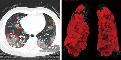 Siemens Healthineersでも,COVID-19に対応した臨床研究用ソフトウエア“AI-Rad Companion Research CT Pneumonia Analysis(以下,CTPA)”3)を2020年5月より共同研究目的で提供を開始し,放射線科医,呼吸器内科医,救急医など複数の医師が使用をしている。