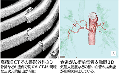 CT部門の森光祐介技師は、Ziostation2の使い勝手について、「3Dの作成では自動処理の精度が高く、気管支動脈の抽出でも大動脈から気管支を栄養する細い血管の抽出もワンクリックで自動で末梢まで抽出されるので時間の短縮になっています」と説明する。そのほか、標準機能のサブトラクションでは、非剛体位置合わせによって検査日の異なる画像でも精度の高いサブトラクションが可能で頭部や下肢の造影検査に多く利用されているという。