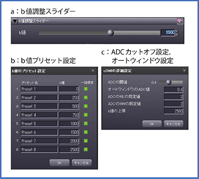 b:頻繁に使用するb値をプリセットしておくことができる。また,プリセットした多数のb値画像を一括して保存できる機能も有している。
