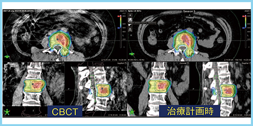 症例3は,甲状腺濾胞がんの腰椎転移である(図3)。このような症例は通常,6軸補正のIGRTを行うが,本症例の病変が1椎体のみであるのに対し,仮に上下複数の椎体にまたがる病変でねじれを含んだ変形がある場合,6軸補正でも位置合わせは困難である。一方,ETHOS Therapyでは,複数椎体にまたがる病変にも対応可能である。