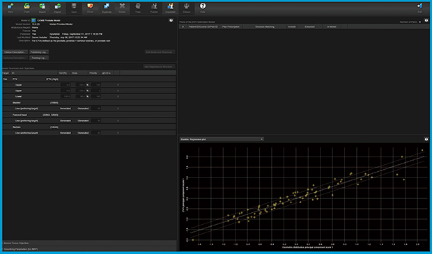 RapidPlanには,いくつかの先行施設のモデルが標準搭載されている。これらのモデルを各施設で利用することも可能である。また,RapidPlanでは構築したモデルを評価するツールを提供する。このツールを使用することで,モデル内の標準的な計画から乖離する計画を除外し,モデルの精度を高めることも可能である。また,世界のユーザーが自施設で構築したモデルや情報を共有する場を提供し,IMRT未実施の施設においても他施設が共有したモデルで作成した治療計画を参考に,自施設の計画作成を開始することも可能となっている。