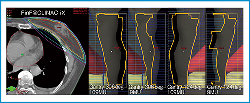 Halcyonの対象症例でまず思い浮かべるのは,強度変調回転放射線治療(VMAT)症例と思われる。従来型リニアックよりも簡便に治療を遂行することが可能となり,以前の半分程度の時間で照射が終了するため,症例あたりの治療時間が7割程度に短縮するといったうれしい誤算が生じた。そこで,光照射野がないことを逆手に取り,皮膚マーキングを書けないといった短所を長所に変えるべく,Halcyonにおける乳房照射の可能性について検討を行った。最も重要視した点は,従来型リニアックにおける乳房接線照射の線量分布と同等,もしくはそれ以上とすることである。本稿では,当院で行っているHalcyon〔flattening filter free(FFF)〕における乳房接線照射の治療計画方法について紹介する。