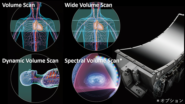 Aquilion ONEでは寝台を動かさずにScanを行うことで,様々な臨床的メリットが生まれます。0.5mm×320列でのVolume Scanを中心とした各種スキャン方式により,さらなる分解能向上,臨床的価値を高めることが期待できます。